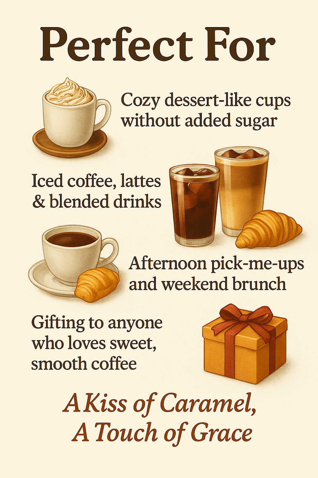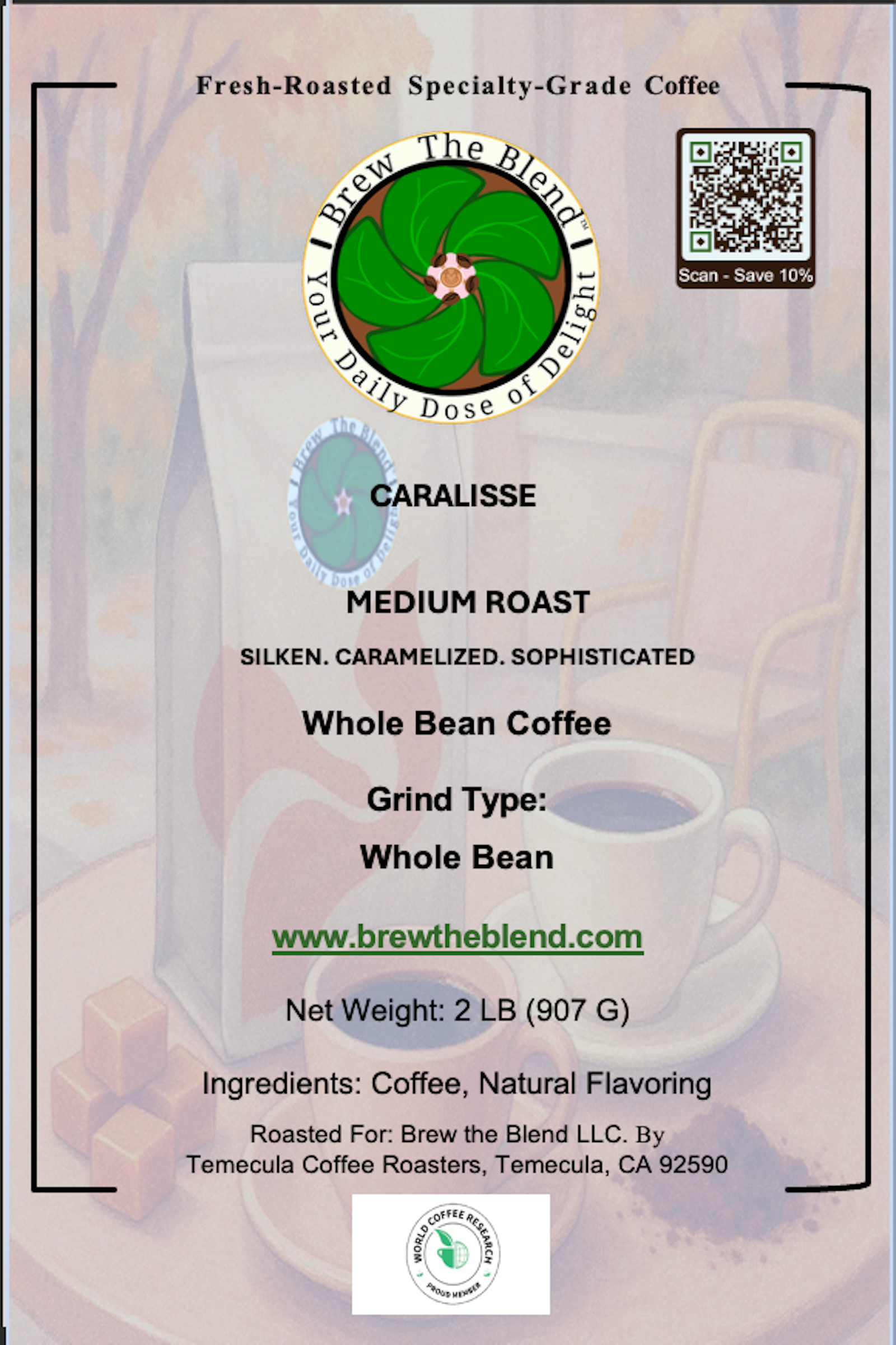 Caralisse is where creamy indulgence meets refined elegance. This specialty-grade medium roast is crafted from high-altitude Arabica beans and infused with the deep, buttery sweetness of caramelized sugar. Each sip is a smooth cascade of silk and warmth—sweet, balanced, and comforting without overwhelming the senses. With a profile that hints at toffee, buttercream, and golden richness, it’s ideal for solo sipping or elevated lattes. From your first inhale to the last velvety drop, Caralisse is a gentle escape into something a little more luxurious.