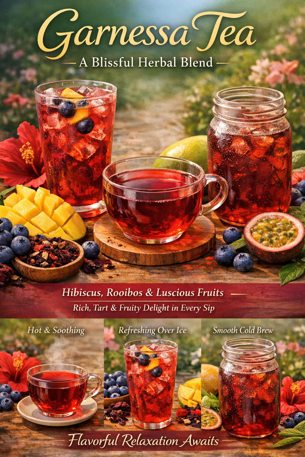 Perfect for winding down or uplifting your day, Garnessa Tea offers a berry-laced, elegant experience that balances beauty and refreshment in every cup.