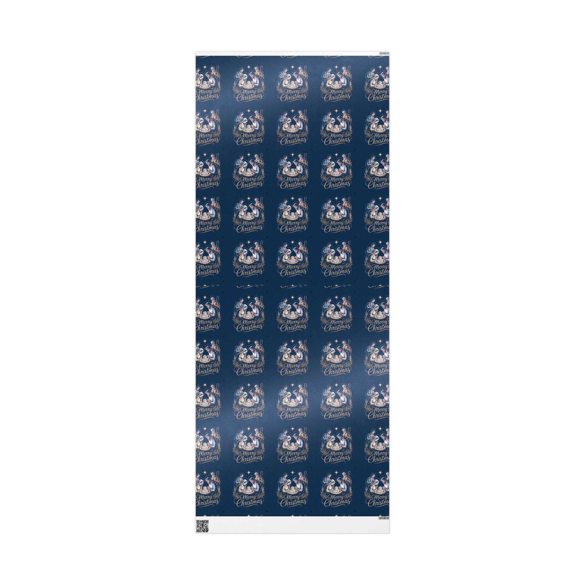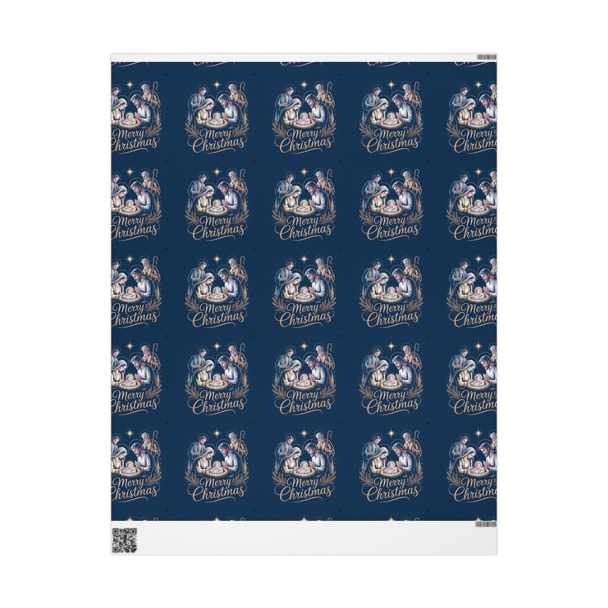 Elegant Christmas Wrapping Paper featuring Nativity Sets and "Merry Christmas". This wrapping paper exudes a classic and festive vibe, perfect for adding a touch of traditional charm to your holiday gifts. Ideal for those who appreciate religious-themed Christmas decor and enjoy a more formal gift presentation. Relevant for Christmas, religious celebrations, and holiday gift-giving.
