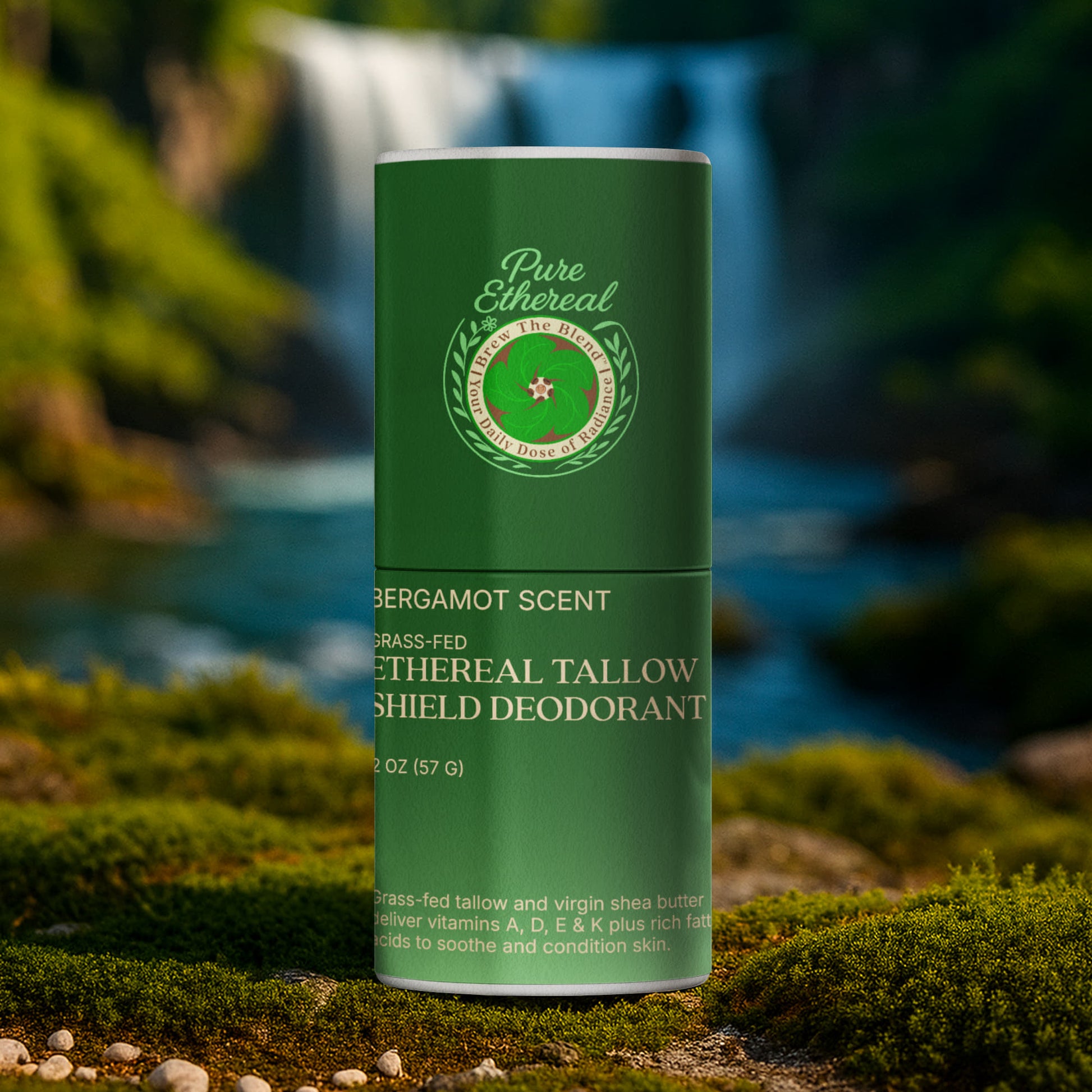 🛡️ Shield Up—The Ethereal Way. - Experience a wholesome, skin-kind, gender-neutral deodorant crafted from grass-fed beef tallow, moisture-absorbing minerals, and a bright twist of bergamot essential oil. Our signature tallow deodorant is designed for everyday odor control while gently nourishing delicate underarm skin.