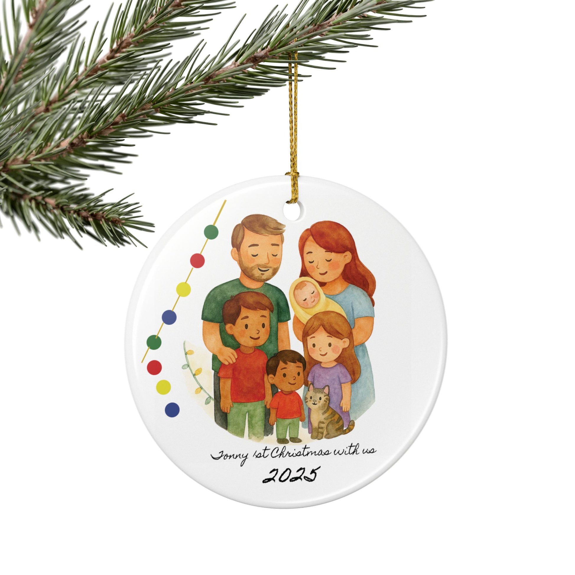Personalized Family Christmas Ornament, Holiday Decor, 2-Sided Ceramic Ornament, Family Gift, Custom Togetherness Keepsake
