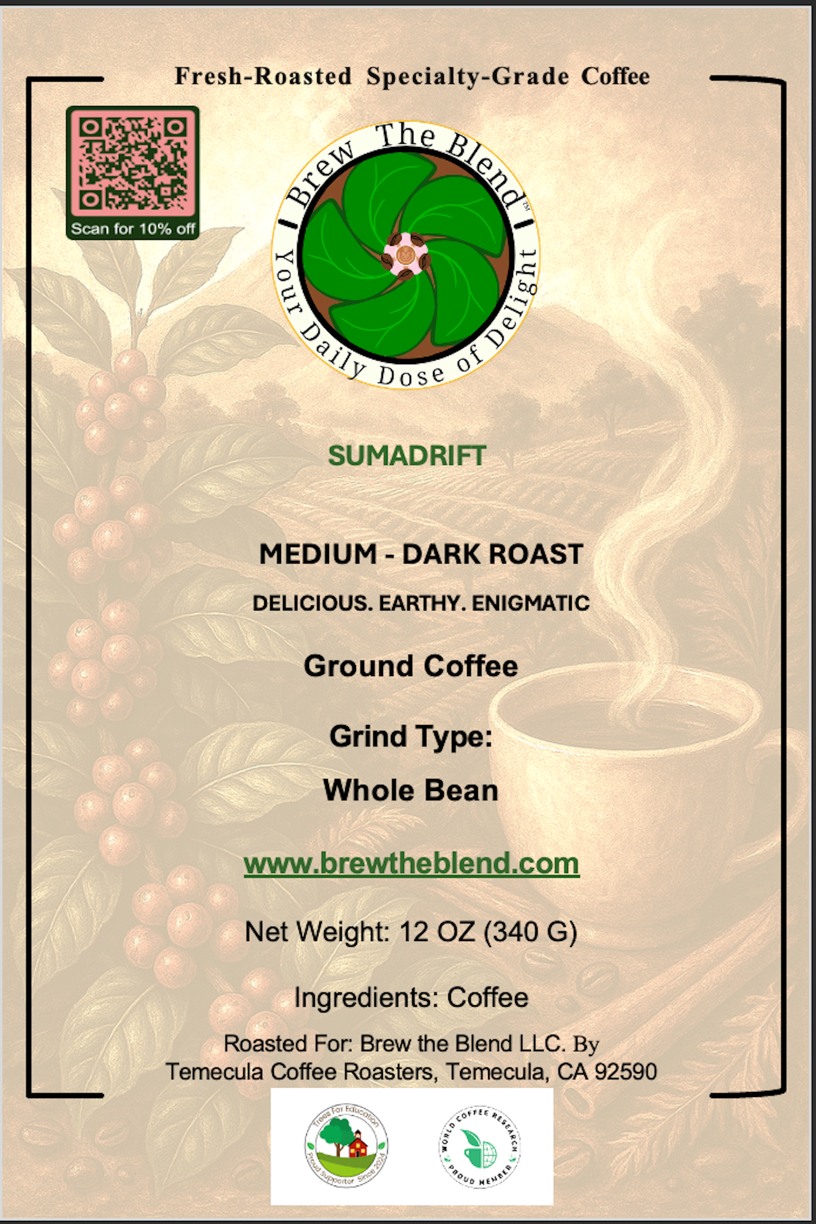 Crafted from smallholder-grown beans in the Indonesian highlands, Sumadrift brings bold flavor, herbal depth, and nuanced chocolate and spice notes into one satisfying roast. This medium-dark coffee pays tribute to Sumatra’s untamed landscapes, where volcanic soils, elevated terrain, and the distinctive wet-hulled process give rise to a coffee that’s as earthy as it is captivating.